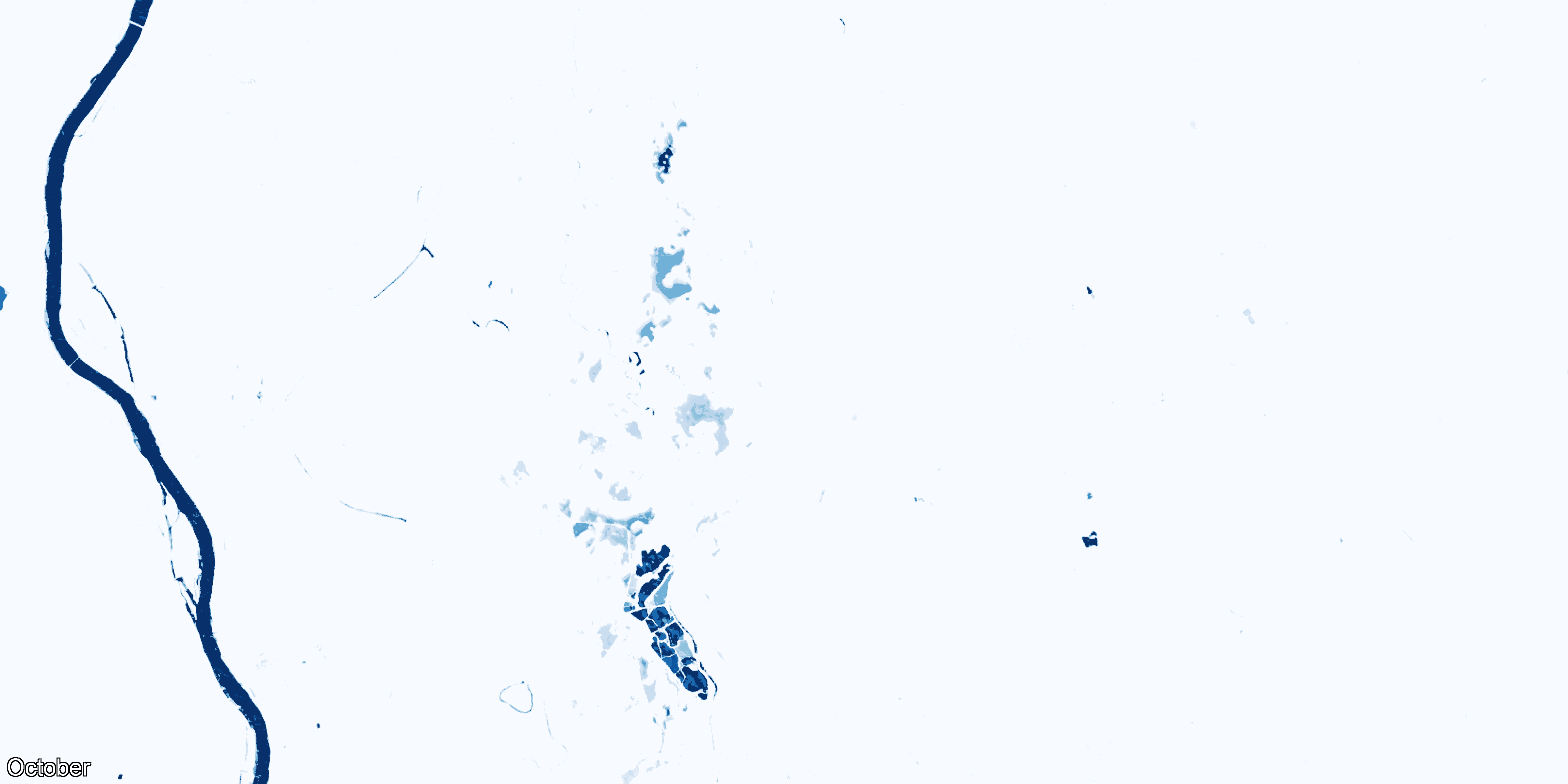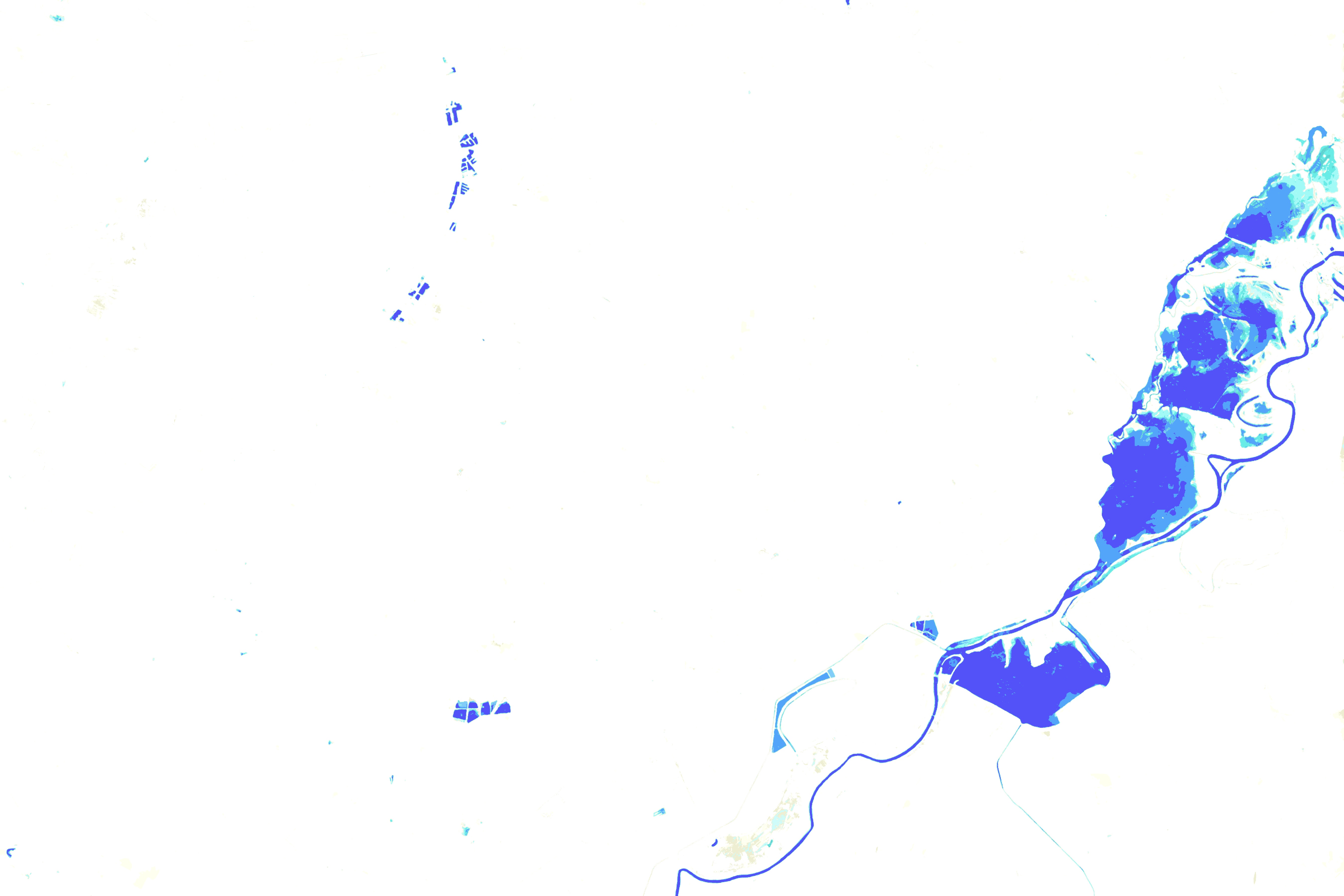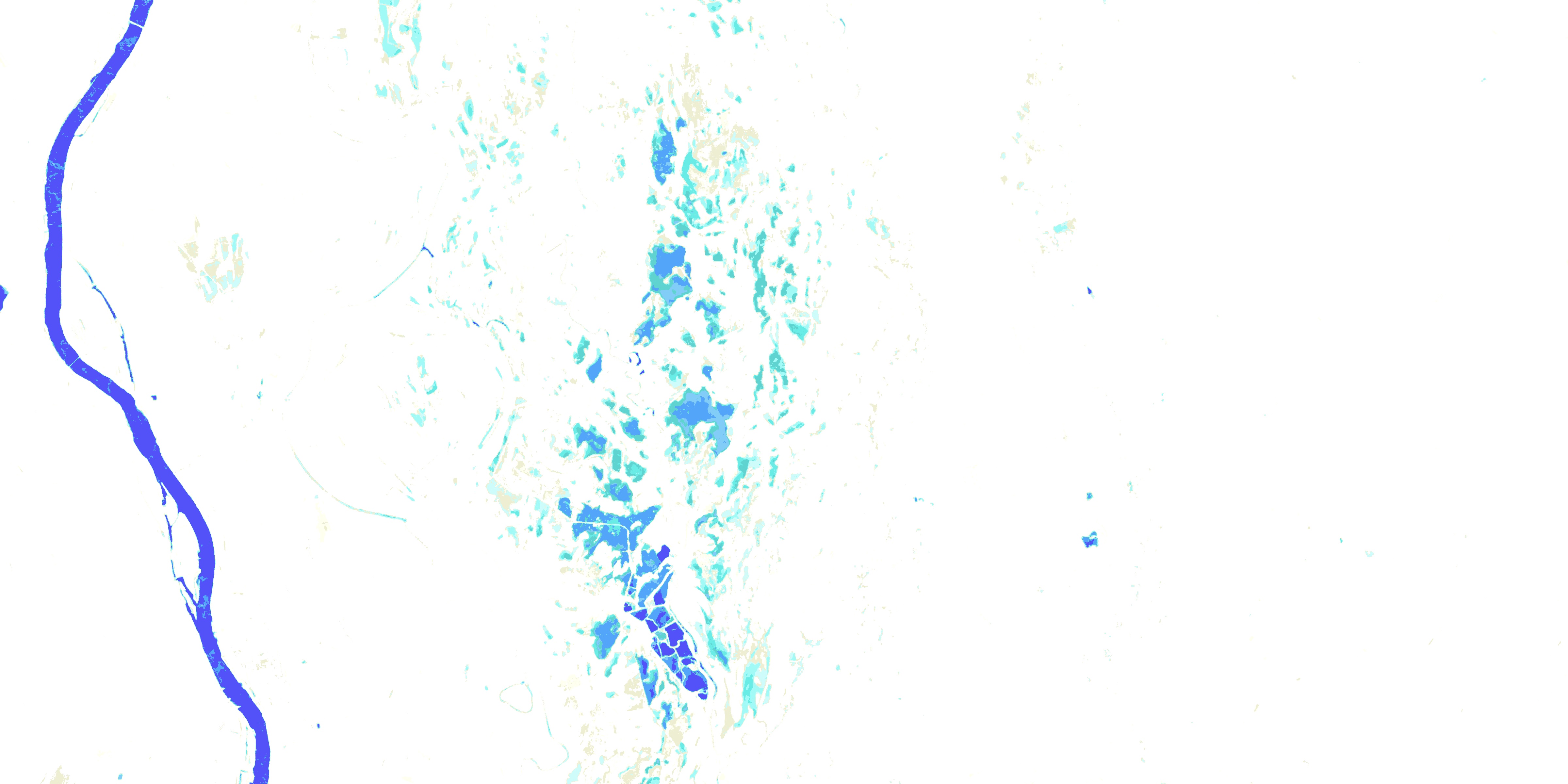 From the temporally homogenized (equidistant) time series of the single-date IEW maps, we also produced maps that describe the temporal characteristics of water presence, such as frequency and duration. These maps were generated for predefined time intervals, covering the years from 2021 to 2024.