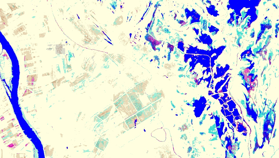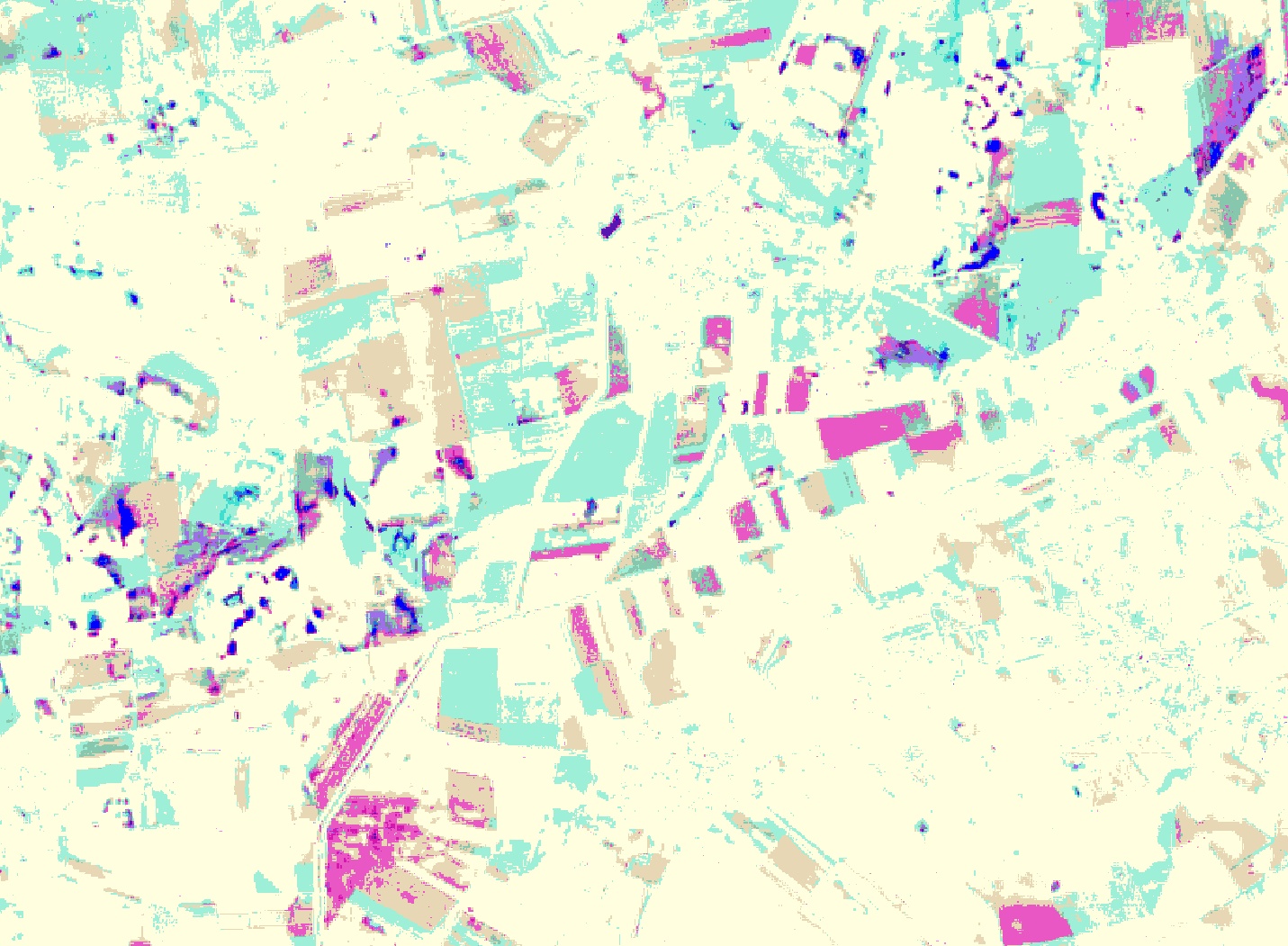 One of the main results of the developments is a series of single-date IEW maps. From these 8 categories maps, we compiled a time series at regular intervals (available every 5 days), which served as the basis for further developments.